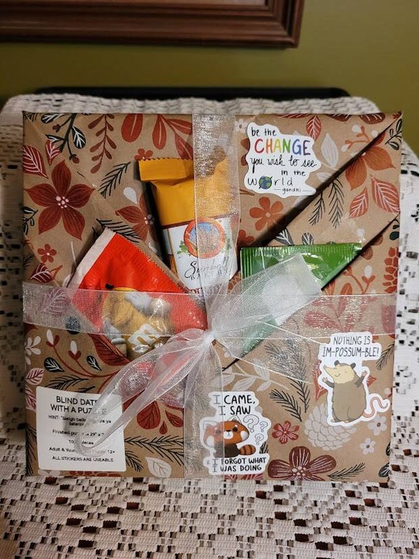 And will be wrapped beautifully so that you can give it as a Grab-N-Go gift or a nice surprise for yourself! No two packages are alike. Pictures are just examples of some that we have done. Each BDWAP will come wrapped in plastic so items can't fall out.